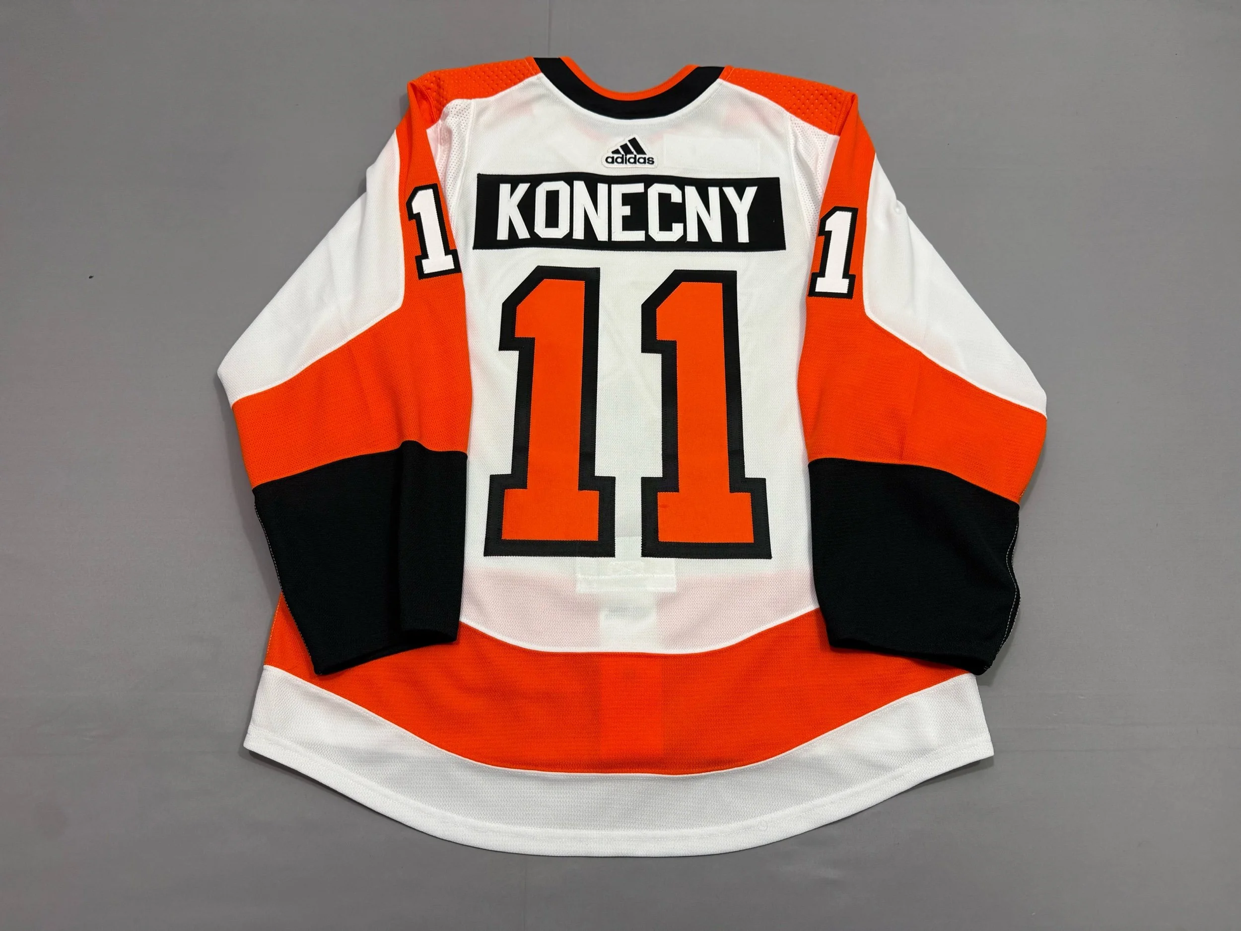 Size 52, in good condition. Customized to on-ice specs as Konecny/11 by Liberty Bell Jerseys.